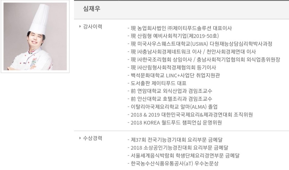 안산대학교 식품영양학부 호텔조리과 산업체겸임조교수